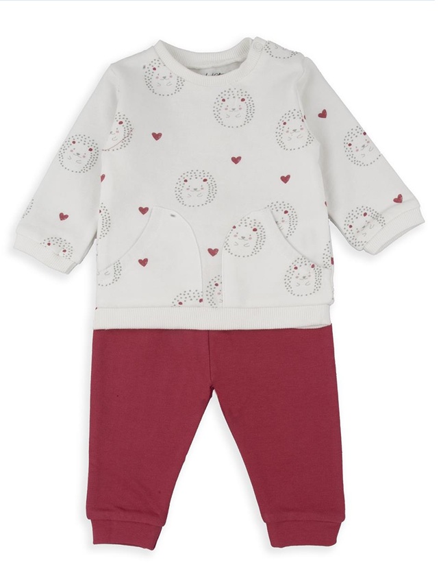 Chándal bebé con motivos de erizos. Bolsillos en el centro de la sudadera, con aperturas laterales.