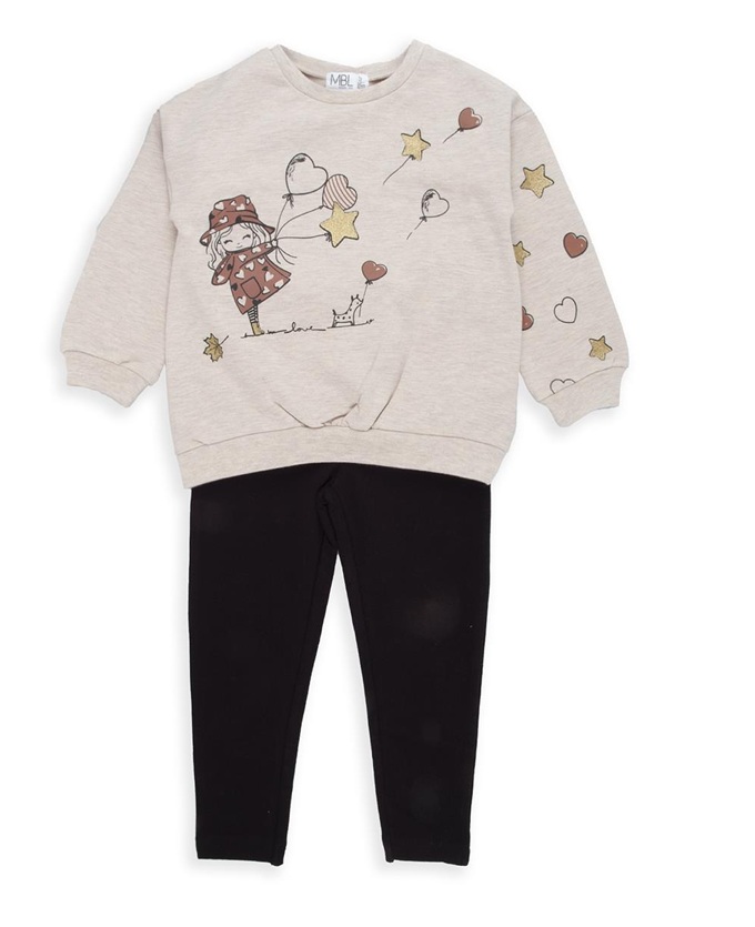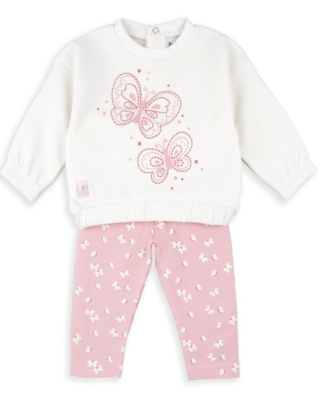 Chándal algodón mariposas, sudadera y leggins afelpados. Puño sudadera engomados.