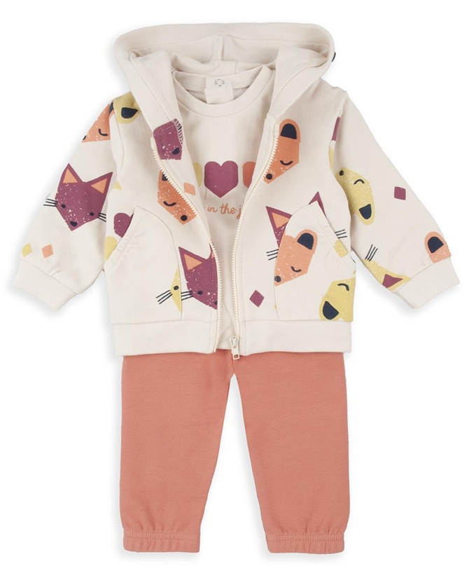 Conjunto tres piezas, sudadera, pantalón y camiseta, con motivos de zorros.