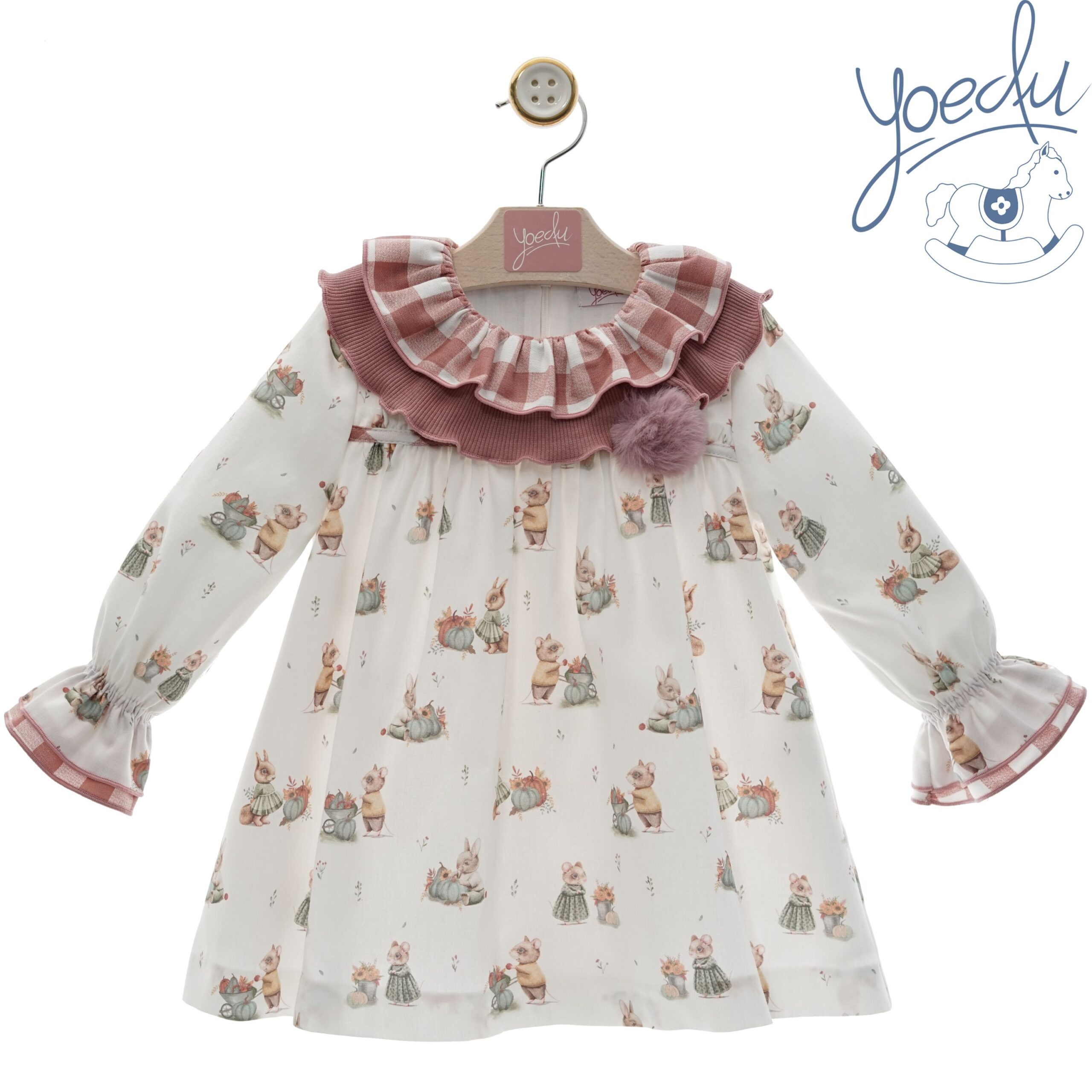 Vestido con puños engomados y cuello vichy.
