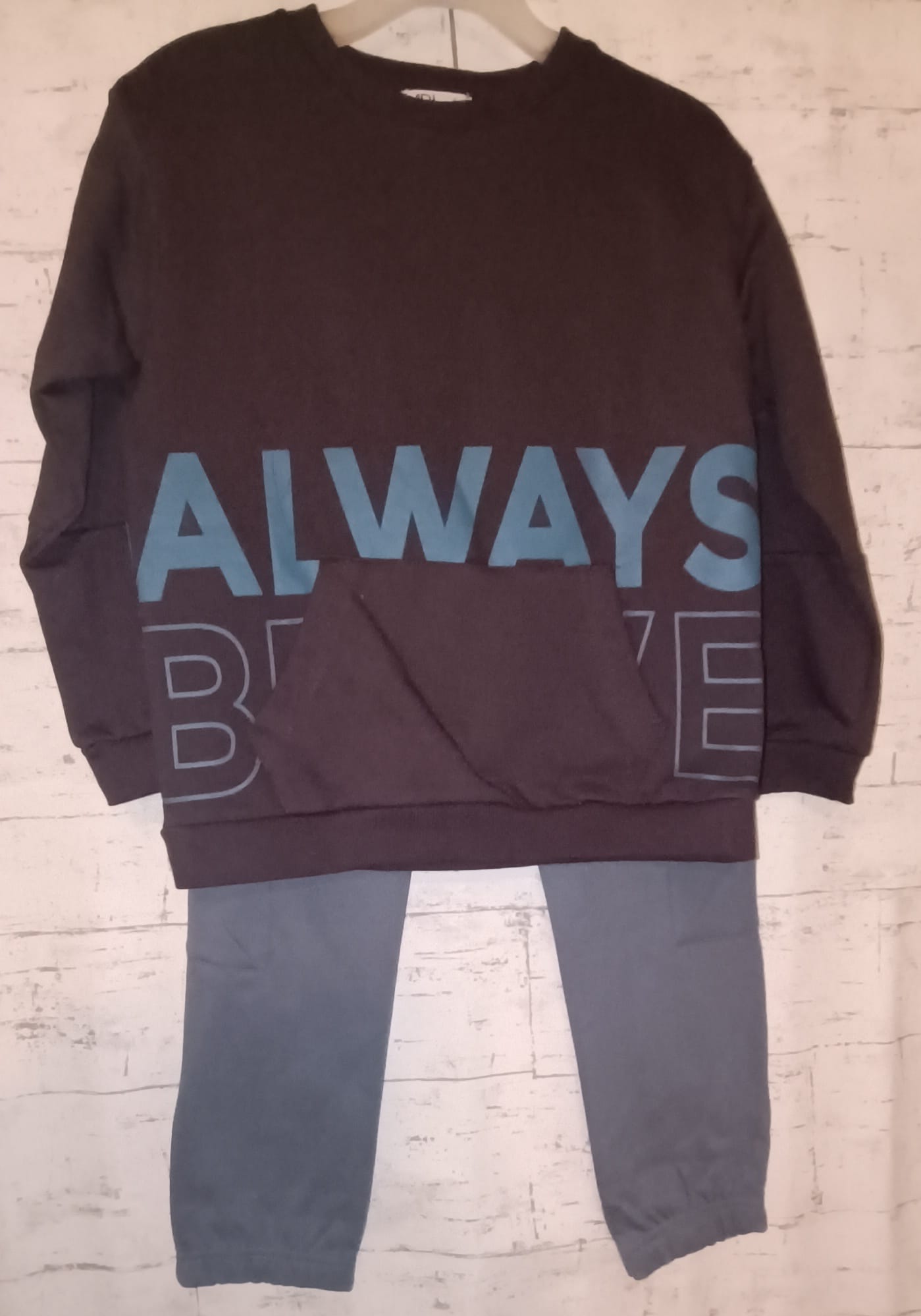 Chándal niño por dentro afelpado, sudadera con letras ALWAYS en azul marino pantalón mas claro.