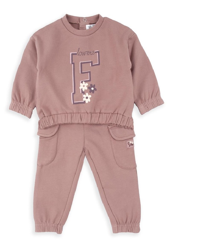 Chándal de algodón, sudadera y pantalón con puños engomados, bolsillos laterales en pantalón superpuestos.