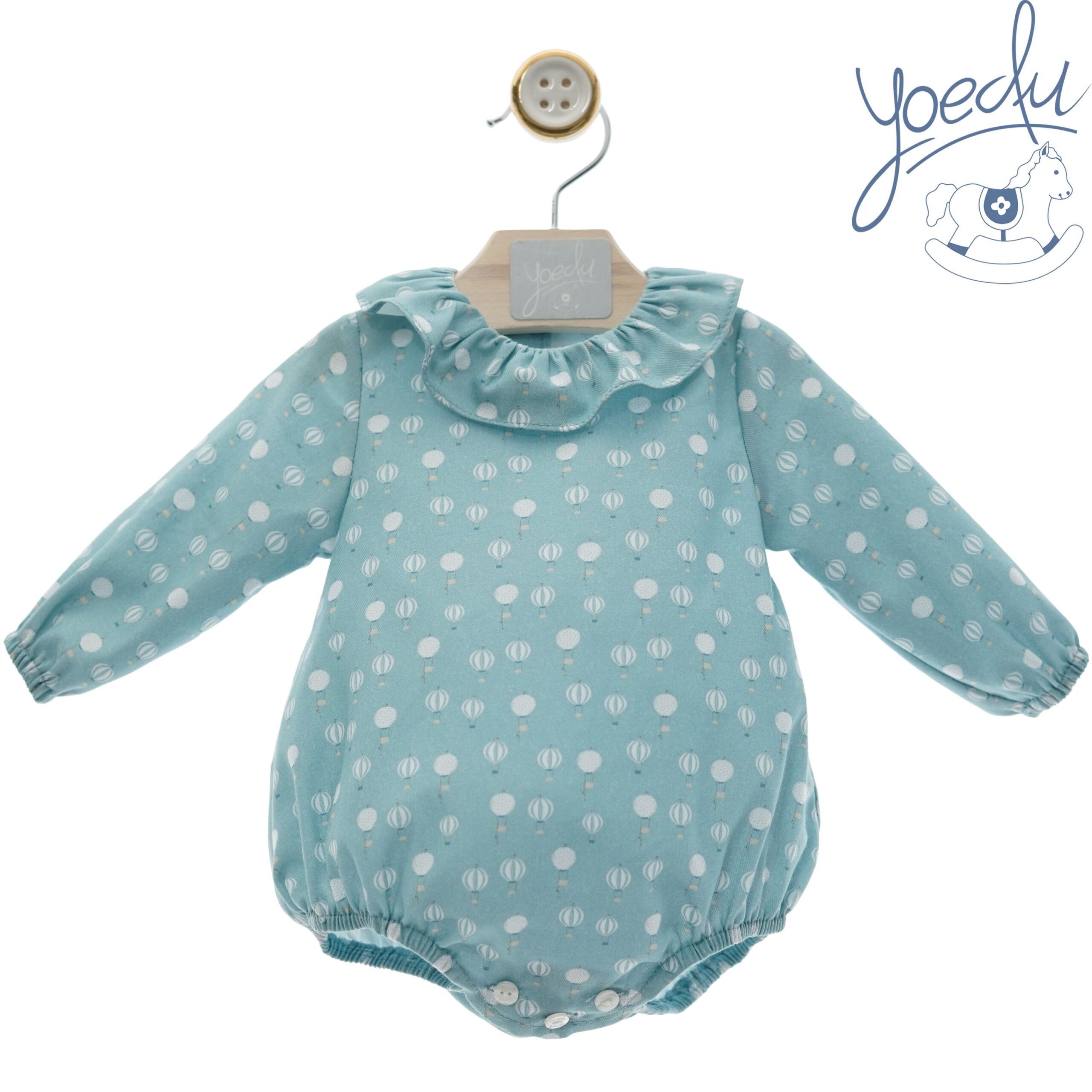 Bambulina con motivo de globos, apertura inferior y puños engomados.