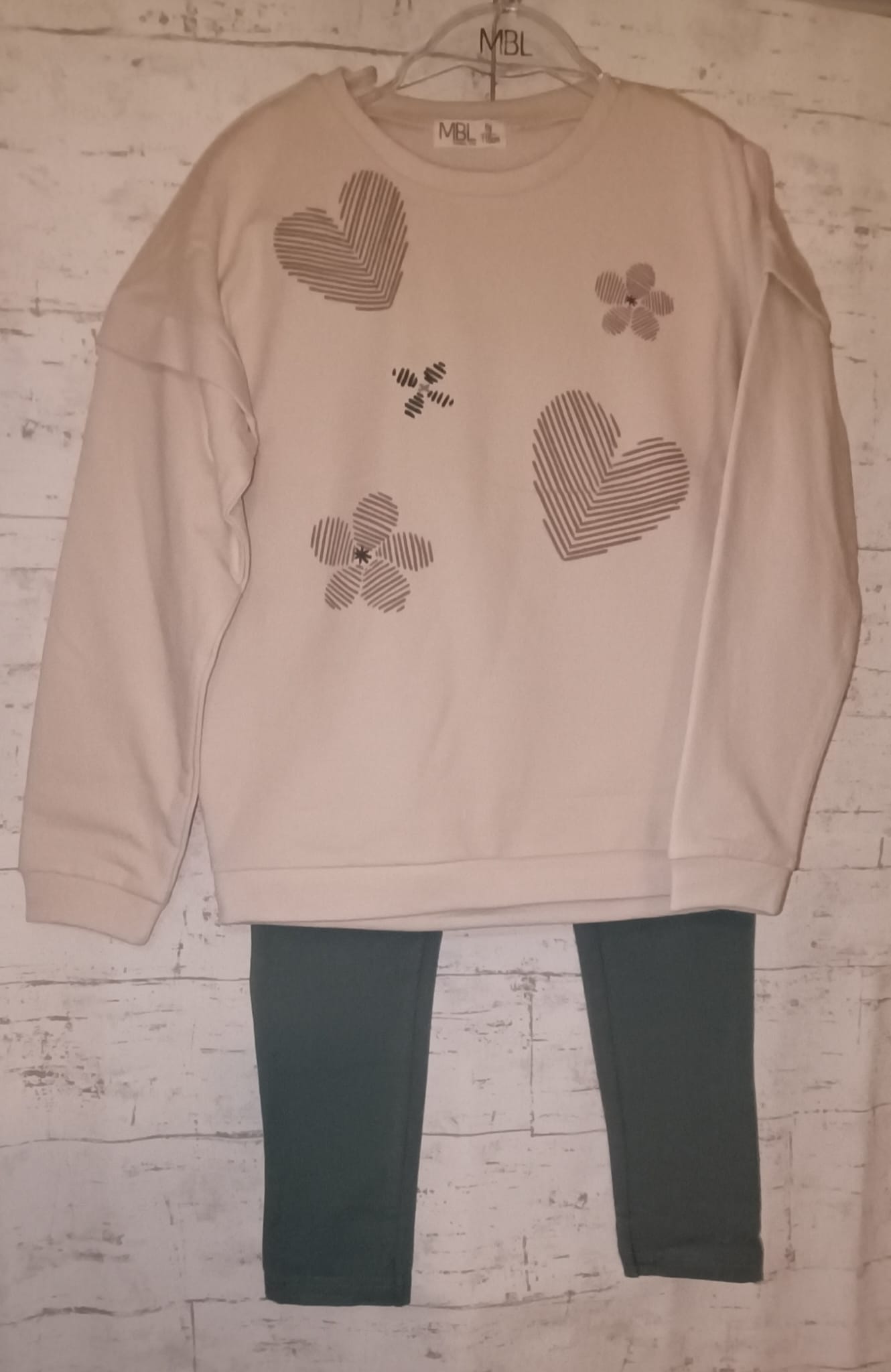 Chándal con motivo de corazones en la sudadera y leggins afelpado verde.