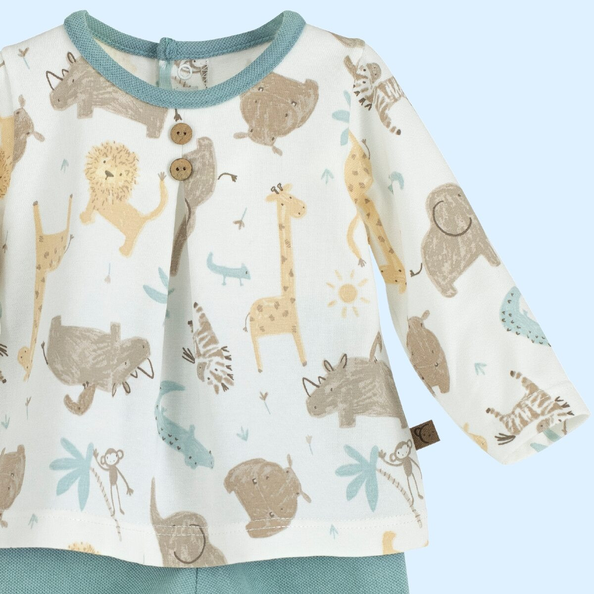 Conjunto bebé algodón animales, polaina y blusa